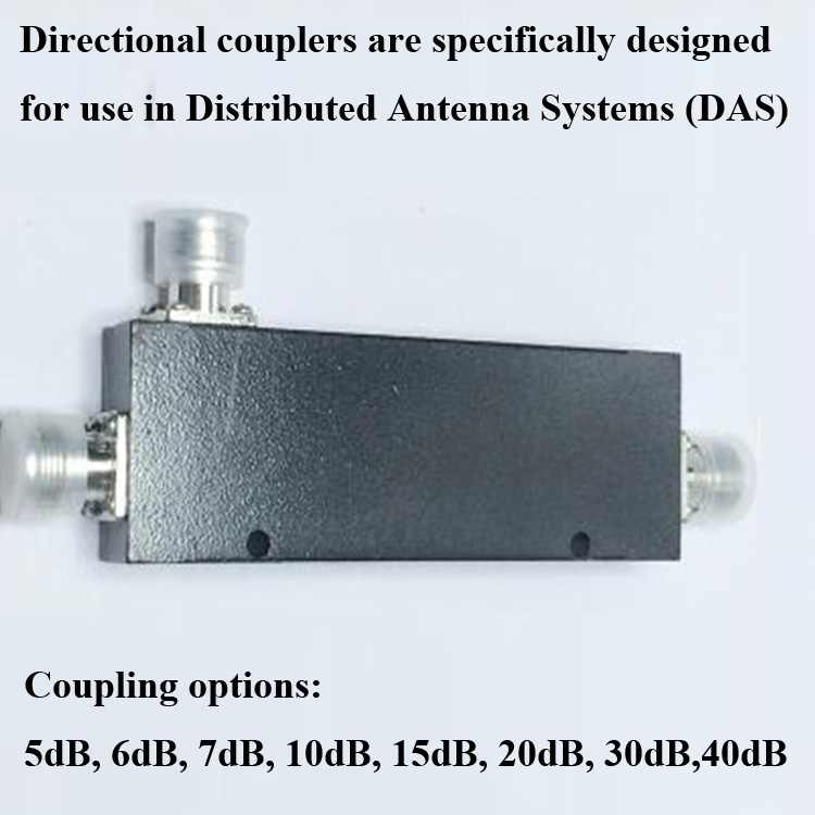 Directional couplers designed for use in Distributive Antenna Systems (DAS) for the construction of chain UHF antenna systems for subways, tunnels, high rises buildings, underground garages, etc.