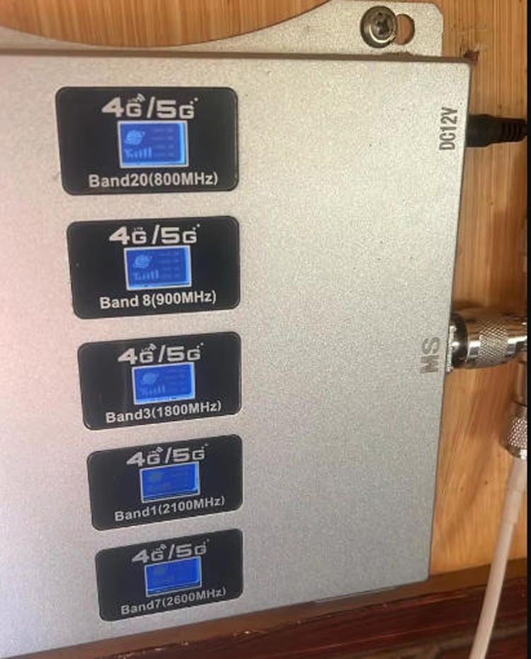 This 5-band mobile signal booster supports 2G, 3G, 4G, and LTE frequencies (800/900/1800/2100/2600MHz), enhancing voice and data signals for seamless connectivity. It covers 300-500sqm, eliminates dropped calls, and improves network speed with an LCD display for signal status monitoring. Ideal for homes and small offices, it includes high linear design and ALC technology for optimal performance.
