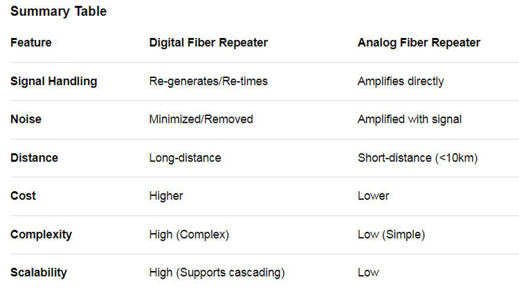Digital repeaters offer far better, future-proof performance for modern, high-speed, and long-distance requirements, whereas analog repeaters remain in use for simpler, cost-effective, and shorter-distance needs.
